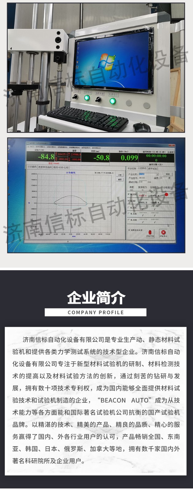 濟南信標(biāo)自動化設(shè)備有限公司主要生產(chǎn):動靜態(tài)萬能疲勞試驗機,接骨板彎曲試驗機,縫合線拉伸疲勞試驗機,髖膝關(guān)節(jié)磨損試驗機,電子萬能試驗機、液壓萬能試驗機、巖石三軸、四軸,電液拉力試驗機,材料試驗機,高低溫蠕變,高低頻疲勞,拉伸、扭轉(zhuǎn)、杯突等二十多個系列兩千多個的品種。