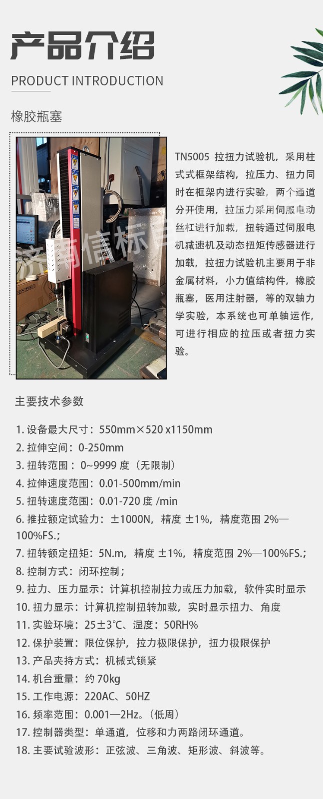 生命科學用疲勞測試系統技術指標